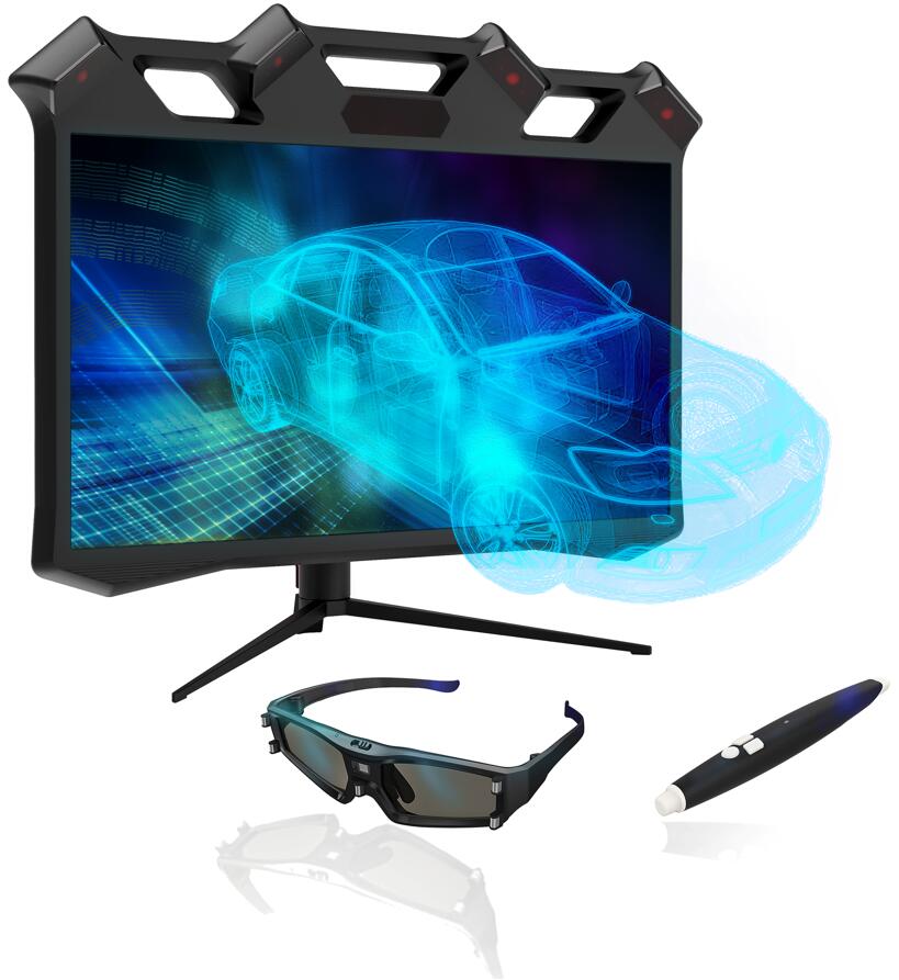 硬件係統由3D追蹤眼鏡,動作捕(bǔ)捉相機,空間交互筆,3D顯(xiǎn)示器,可插拔(bá)電腦,AR交互組件等部件組成。